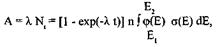 σ(Ε) — сечение активации для нейтронов с энергией E в веществе детектора. Пределы интегрирования E1 и E2 соответствуют нижней и верхней границам энергии в спектре нейтронов.