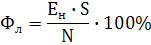 Для расчета общего равномерного освещения при горизонтальной рабочей поверхности основным является метод светового потока (коэффициента использования), учитывающий световой поток, отраженный от потолка и стен. Световой поток лампы Фл, лм, при лампах накаливания или световой поток группы ламп светильника при люминесцентных лампах рассчитывают по формуле: