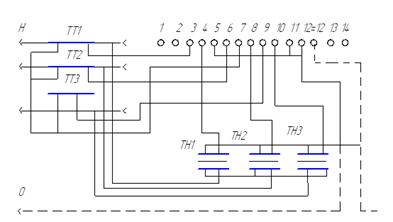 Схема подключения счетчиков типа ПСЧ‑4 к трехфазной сети.