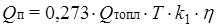 - коэффициент неполноты сгорания топлива, принимаемый равным