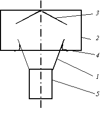 1 - диффузор, 2 - цилиндрическая обечайка, 3 - колпак, 4 - конус, 5 - патрубок