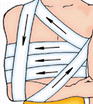 Ранения грудной клетки При ранениях мягких тканей грудной клетки значительных наружных кровотечений, как правило, не бывает. Если рана глубокая (проникает в грудную клетку), происходит повреждение плевры или легкого, которое сопровождается попаданием воздуха и тяжелым кровотечением в плевральную полость. В результате легкое спадается, дыхание становится частым, появляются чувство «нехватки воздуха» (одышка), посинение лица, туловища и конечностей, общая слабость, головокружение, потеря сознания. Воздух может попадать под кожу в области раны и при ощупывании ее определяться в виде «хрустящих пузырьков» под кожей. Оказание помощи 1. очистить и промыть рану 2. обработать кожу вокруг раны 3. наложить герметизирующую (окклюзионную) повязку Герметизирующую повязку накладывают для того, чтобы предотвратить дальнейшее попадание воздуха в плевральную полость. Перед наложением повязки края раны смазывают любым жиром (вазелин, крем, растительный жир и т.п.), желательно стерильным. Затем на рану и на кожу вокруг нее накладывают непроницаемый для воздуха материал (резина, полиэтиленовая пленка, клеенка и т.п.), а поверх — обычную тугую бинтовую повязку, витки которой идут вокруг грудной клетки. Для этого бинт размером около 1 м кладут на левое плечо, чтобы один конец висел на спине, другой — на груди. Спиральными круговыми ходами, накладывающимися друг на друга, бинтуют грудную клетку снизу вверх до подмышечных впадин и здесь завязывают или фиксируют английской булавкой. Свободно висящую часть бинта перекидывают через правое плечо и связывают с концом, висящим на спине. Для повязки можно использовать полотенце, простыню, которыми обматывают грудную клетку пострадавшего и туго завязывают на здоровой стороне. При отсутствии жира и воздухонепроницаемой ткани непосредственно на рану грудной клетки наклеивают большое количество полосок липкого пластыря, так чтобы края их накладывались друг на друга (в виде черепицы). |