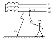 1. Однофазное прикосновение к токоведущим частям трансформатора в нормальном режиме работы сети, IЧ =2,88 А