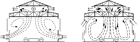 Аэрацией является организованный естественный воздухообмен, осуществляемый за счет ветрового давления и регулируемый в соответствии с внешними метеорологическими условиями (рис. 2).