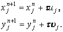 После вычисления массивов характеристик частиц (28) рассчитываются новые положения частиц на (n+1)-ом временном слое